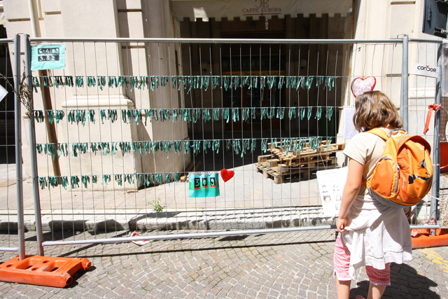 delle chiavi delle case inagibili, diventate strumento di denuncia affidato alle transenne insieme alla speranza di rientrarci in tempi ragionevoli forse anche perché il dolore che danno a ritrovarsele tra le mani ha trovato un minimo di sollievo nella trasformazione in simbolo.